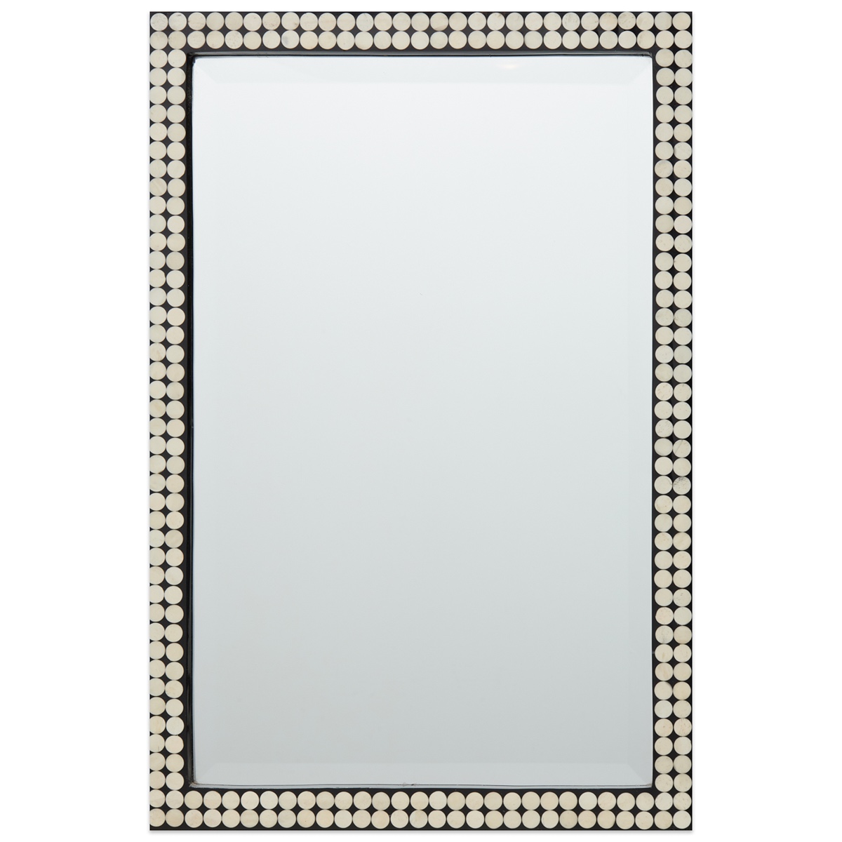 Contemporary Rectangular Wood-Framed Mirror With White Dots
